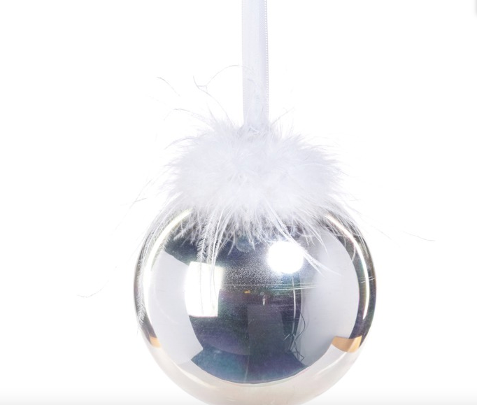 Silver Ornament with White Feather