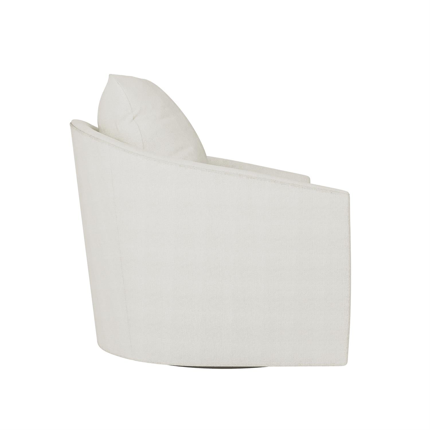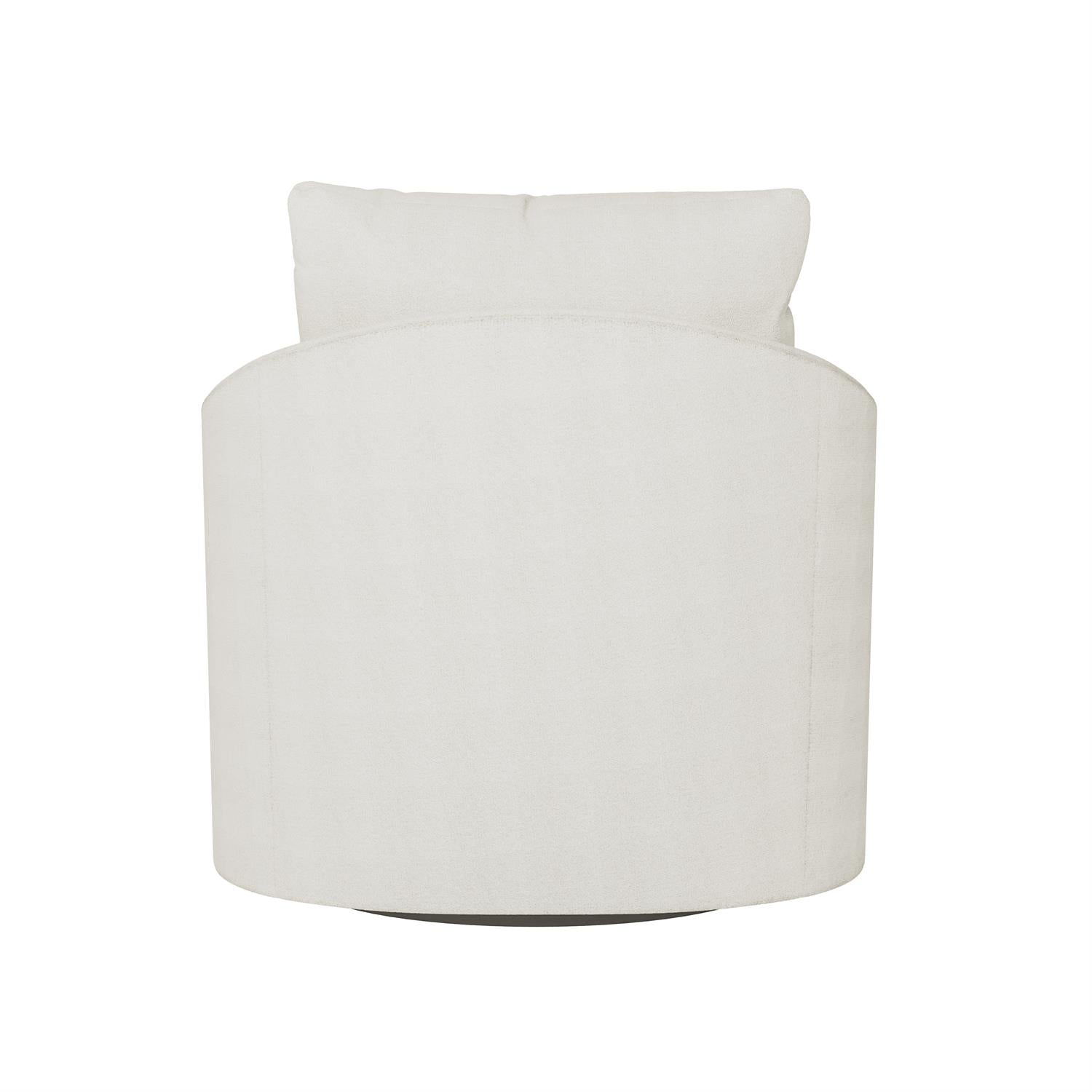 Astoria Swivel Accent Chair is a stylish addition to any living room. Its white fabric upholstery adds a touch of elegance, while the one fiber back pillow and spring down seat cushion provide ultimate comfort. The Soft curves, sloped arms and plush cushions give this subtly sophisticated swivel chair its relaxed modern look.