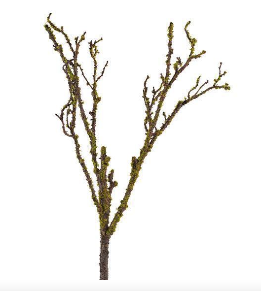 28" H Branch with brown and green moss.