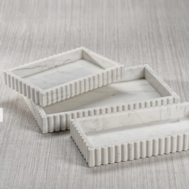 Camogili Scalloped White Marble Tray