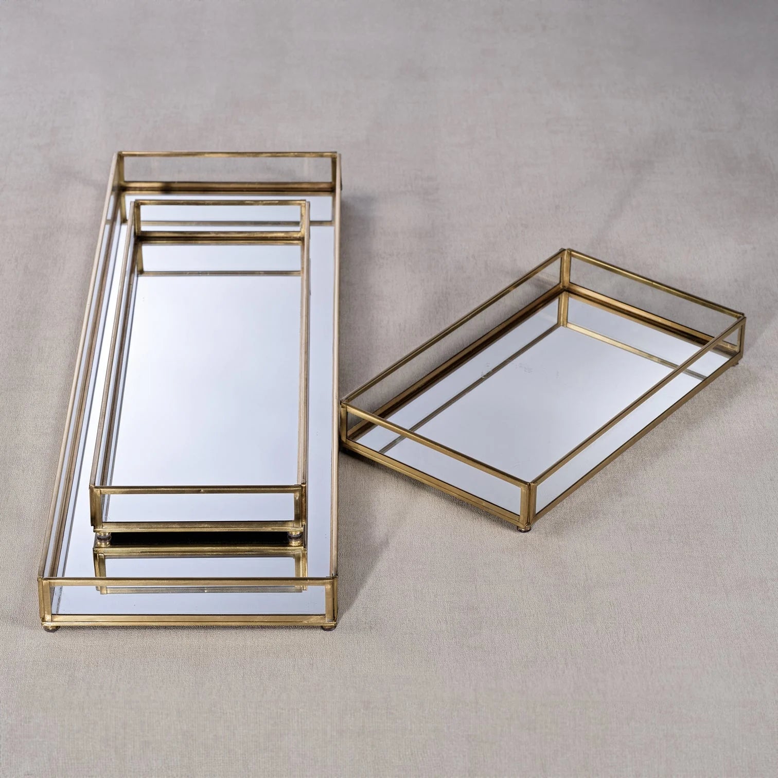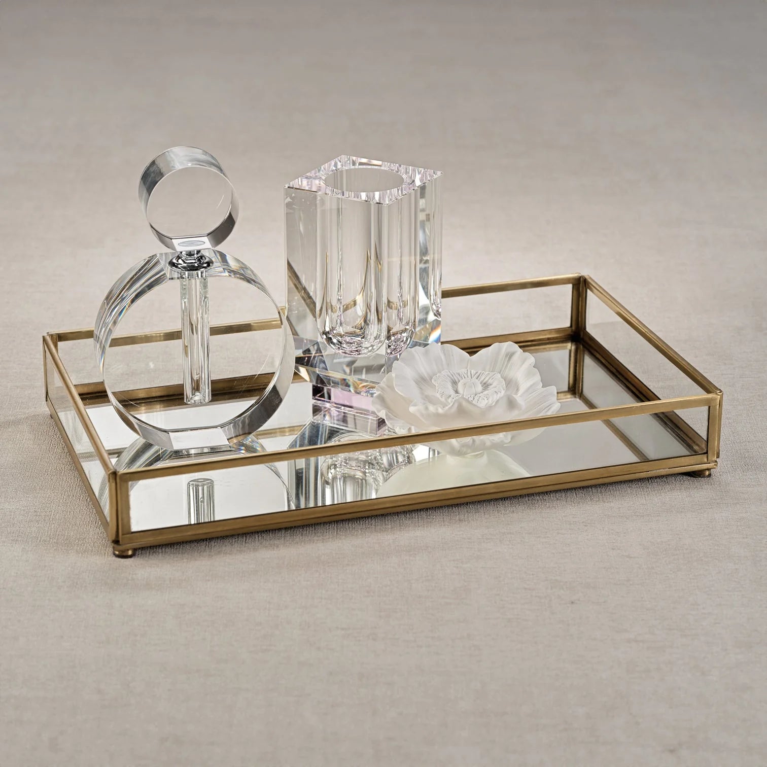 Clean Gold lines paired with the stunning mirrored bottom makes this rectangular tray perfect for any vanity, counter or table!
