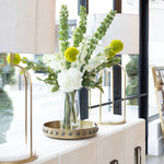 Edwin brings a distinctive, luminous style to any display surface. Our Exquisite round brass tray is perfect for all your tabletop treasures. Finished in on-trend brass with resin appliques. Use damp cloth on wood, metal, marble, or glass to wipe clean.