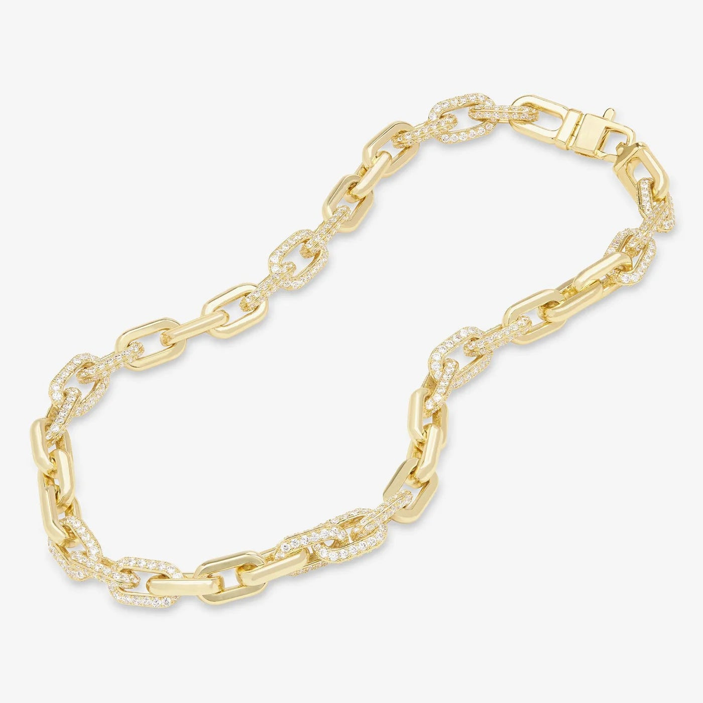 Being bold never goes out of style. Substantial, bold, and adorned with pavé simulated diamonds for a dazzling finish, the Frankie Pavé Chain Necklace unapologetically shimmers with luxury. Whether you're dressing up for a night out or adding a touch of edge to your everyday look, this necklace does all the talking. This isn't just a necklace; it's a bold declaration of style.