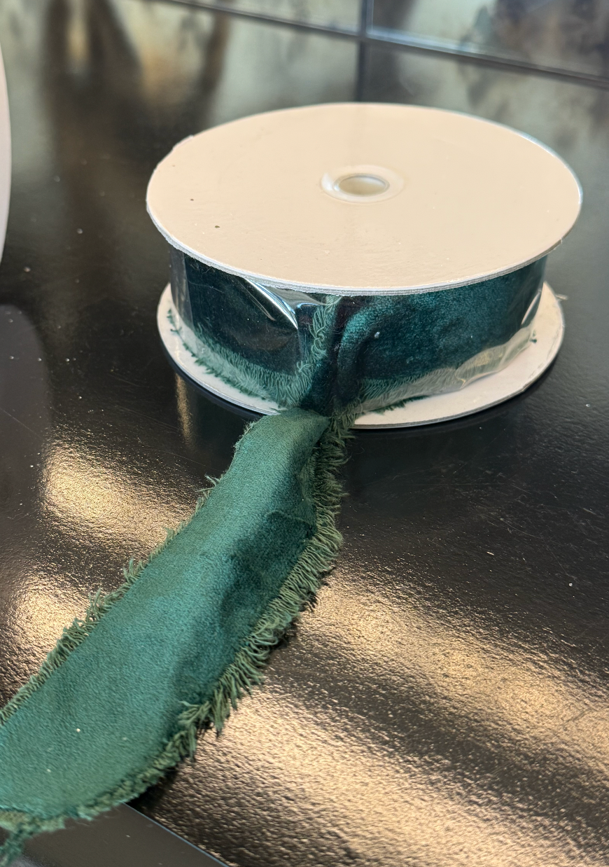 Hunter Green Frayed Edge Velvet Ribbon - 1.5"