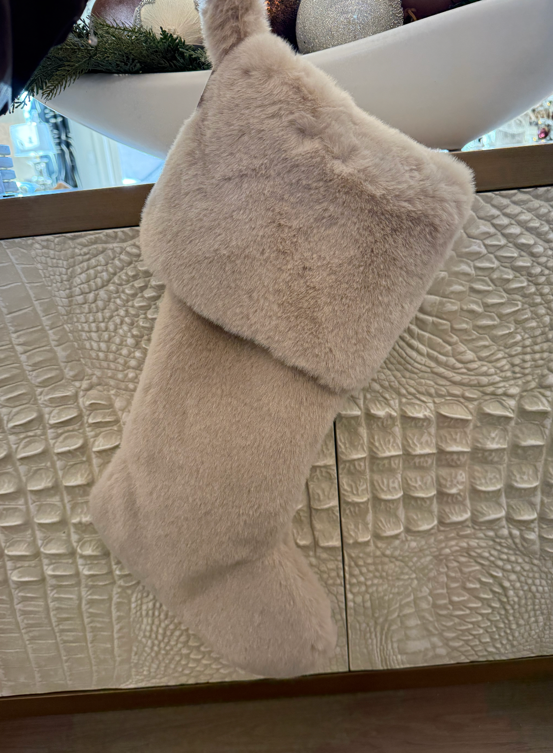 Elevate your holiday décor with this sumptuous fur stocking in warm beige. Crafted from luxuriously soft faux fur, it drapes beautifully across your mantle, adding an instant touch of sophistication and seasonal charm. Perfect for displaying personalized name tags or filling with festive treasures, this statement piece transforms your fireplace into a curated focal point that guests will admire. A timeless addition to your home's most cherished gathering space.