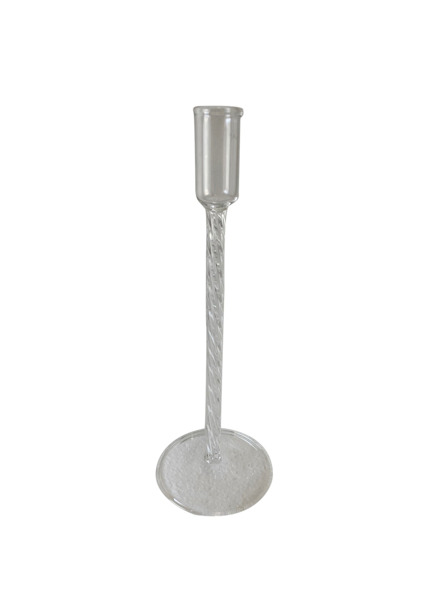 Enhance your ambiance with this sleek and contemporary clear glass candle stand, adding a touch of elegance to any setting. Its versatile design complements various decor styles while providing a stable and stylish platform for your favorite candles. Whether used as a centerpiece for your dining table or to create a cozy atmosphere in your living space, this candle stand is sure to elevate your decor with its timeless charm.