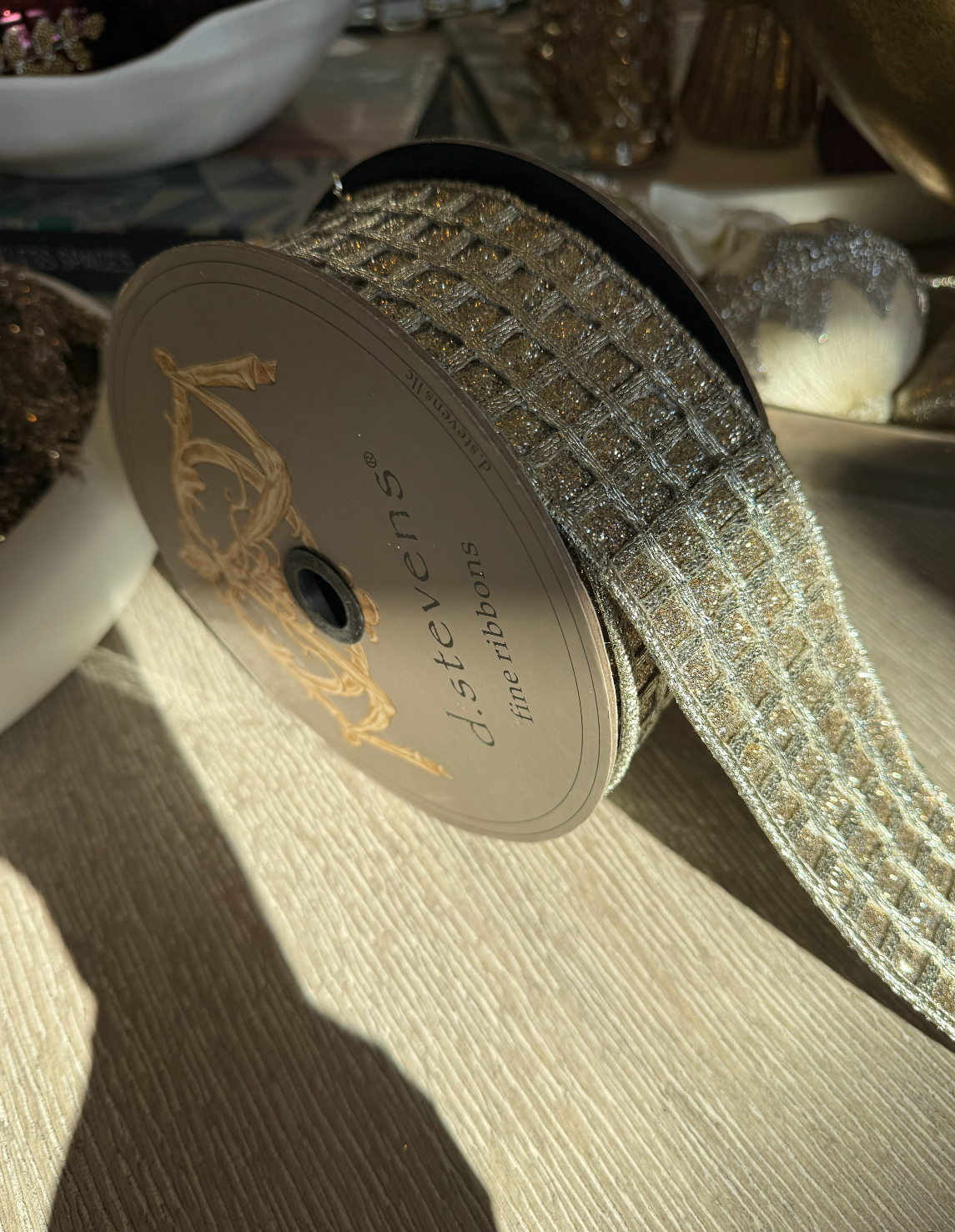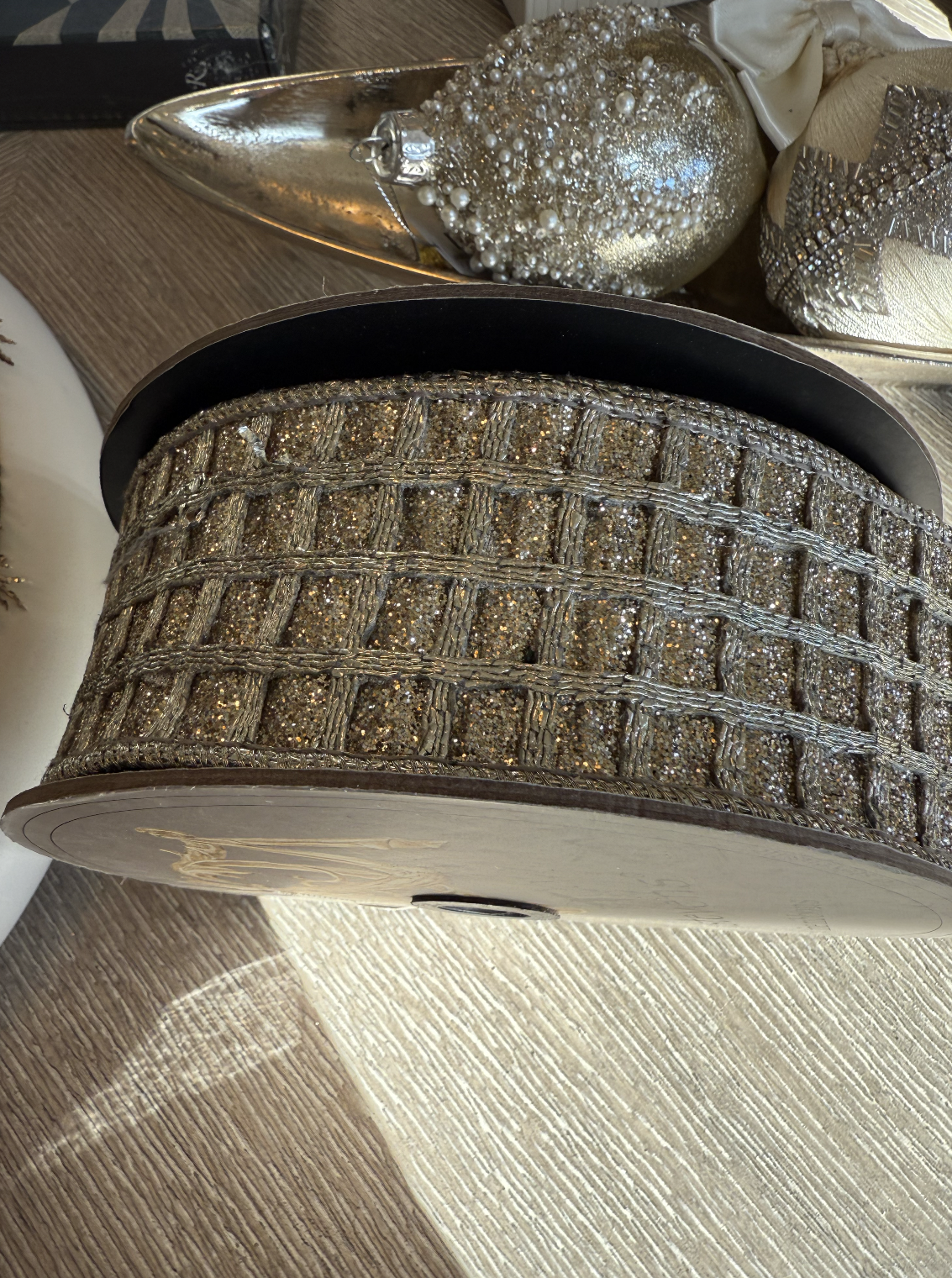 Glitter Metallic Platinum Pane Ribbon