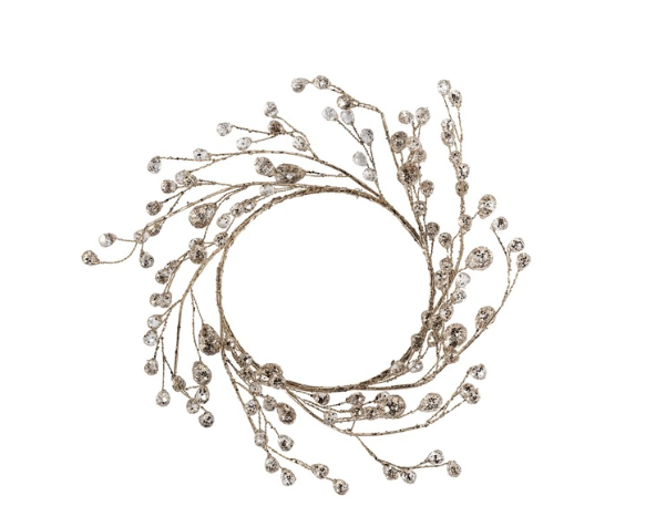 This stunning Beaded Glass Berry Wreath is the perfect addition to your holiday decor. The wreath features clear and gold beads that shimmer and shine, adding a touch of elegance to any space. Measuring 9 inches in diameter, this wreath is the ideal size for hanging on your front door or using as a centerpiece on your table. Add a touch of sparkle to your home this holiday season with this beautiful Beaded Glass Berry Wreat