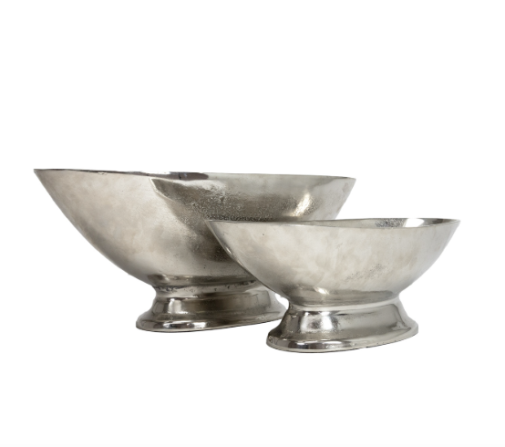 Bring a shiny, modern touch to your interior design with the sleek Kali Bowls. Crafted from silver-toned metal, these chic footed bowls offer a beautiful balance of luxury and utility. Suitable for holding orbs or simply adding charm to your home decor, these bowls come in two different sizes measuring 19.5L x 7W x 8H and 16L x 6W x 6H.