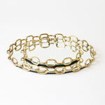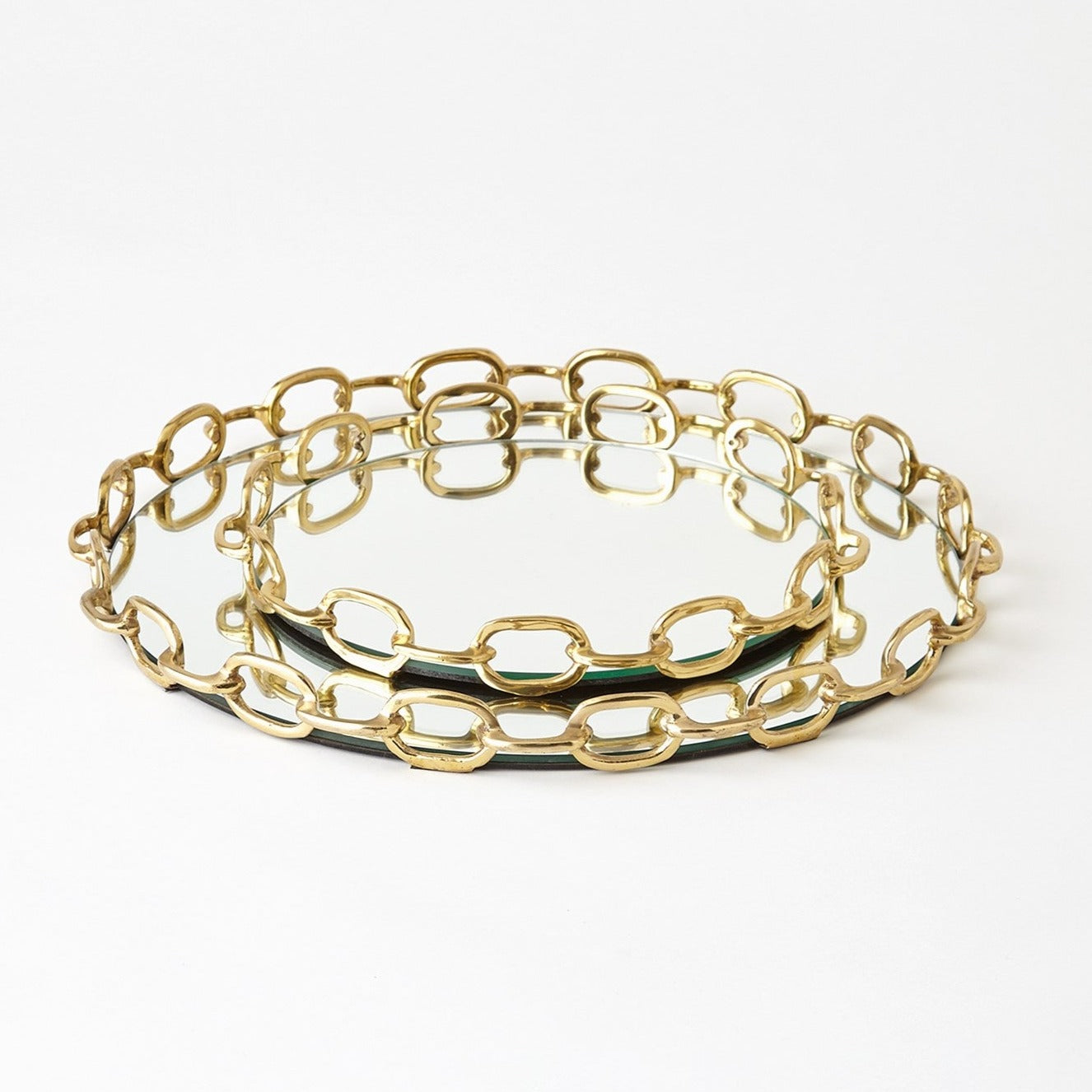Classic chain links finished in polished brass and molded together to create an urban gallery tray. Mirrored interior bottom surface.