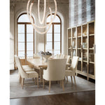 Transform your dining space with the sophisticated Westwood Rectangle Dining Table. Featuring two 20-inch leaves, this elegant table extends to 126 inches, making it perfect for large gatherings. The quartered oak veneers with a Polished Limestone finish, paired with plated hardware and double pedestal bases, exude subtle luxury and contemporary design. Ideal for those who appreciate minimalism with a touch of modern flair, this dining table offers both form and function for any upscale dining room.