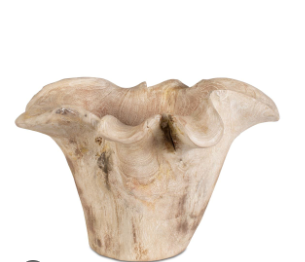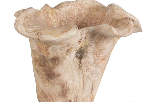 Crafted from white-washed teak wood, this stunning bowl showcases organic beauty with its flowing sculptural form. A perfect blend of art and function, it adds rustic elegance to any space while serving as a unique centerpiece or decorative accent. Because each is individually handcrafted, natural variation will occur from piece to piece. Safe for outdoor use.