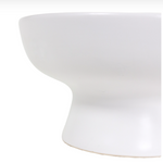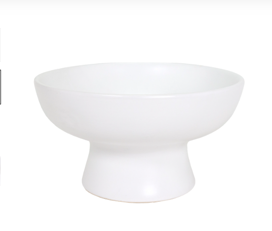 Introducing the Toba Bowl. Handcrafted from durable ceramic, this modern, minimalistic pedestal-style bowl defines sophistication and simplicity. Its pure white color is a picture of elegance that easily blends in with any home decor theme. The bowl stands at a dimension of 12D x 6.5H, making it an ideal size for side tables, centerpieces, or even coffee tables in the living room. The round shape of the Toba Bowl adds a chic modern feel to your interior design. Use it as a decorative bowl to store trinkets or simply as an embellishment on its own. The Toba Bowl – where style and functionality meet.